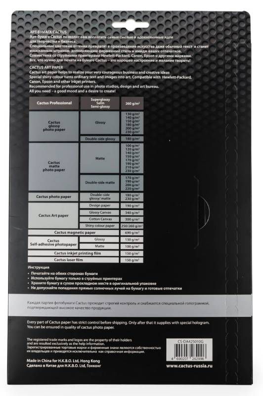 Тип Фотобумага для струйной печати