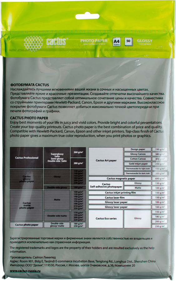 Фотобумага Cactus CS-GA420050ED A4/200г/м2/50л/белый глянцевое для струйной печати