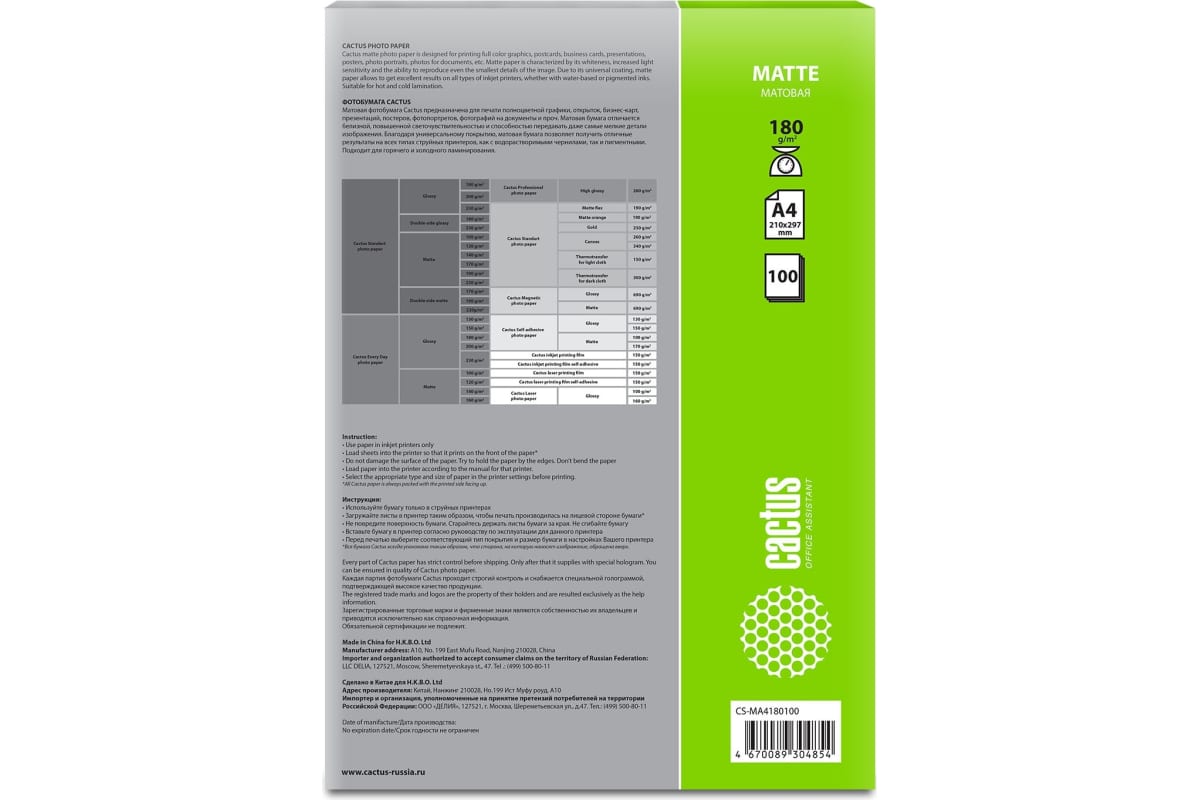 Тип фасовки