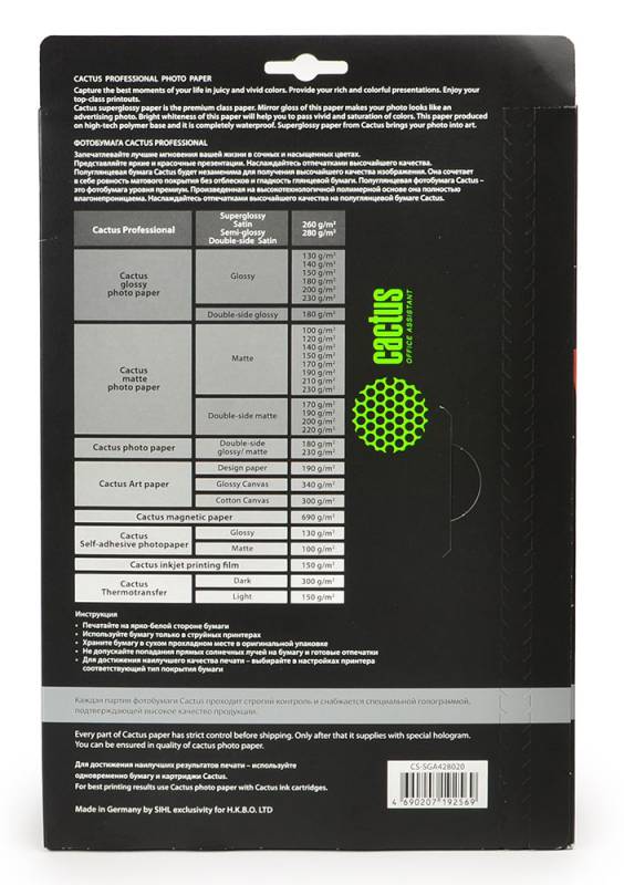 Плотность: 280 г/м2Покрытие первой стороны: полуглянцевоеКоличество пачек в упаковке: 1Отзывы