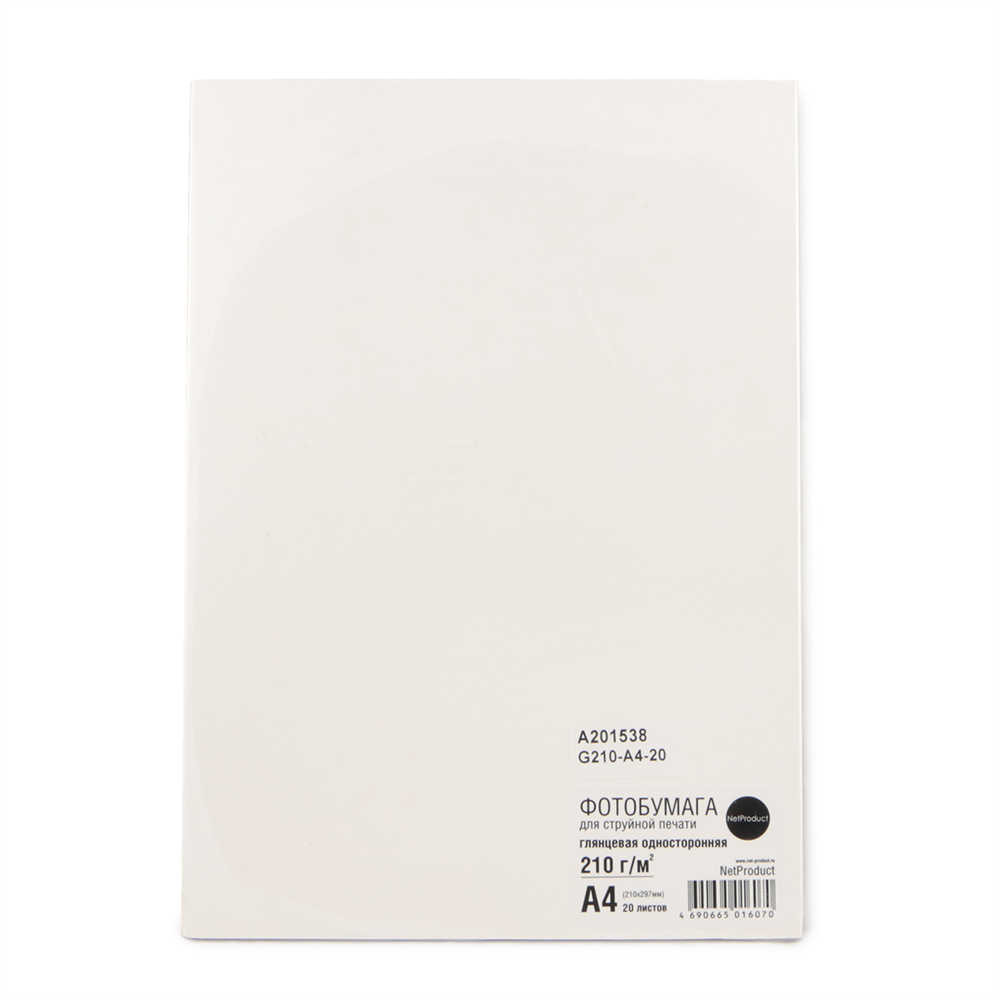 Фотобумага А4 NetProduct глянцевая односторонняя, 210 г/м2, 20 листов (A201538)