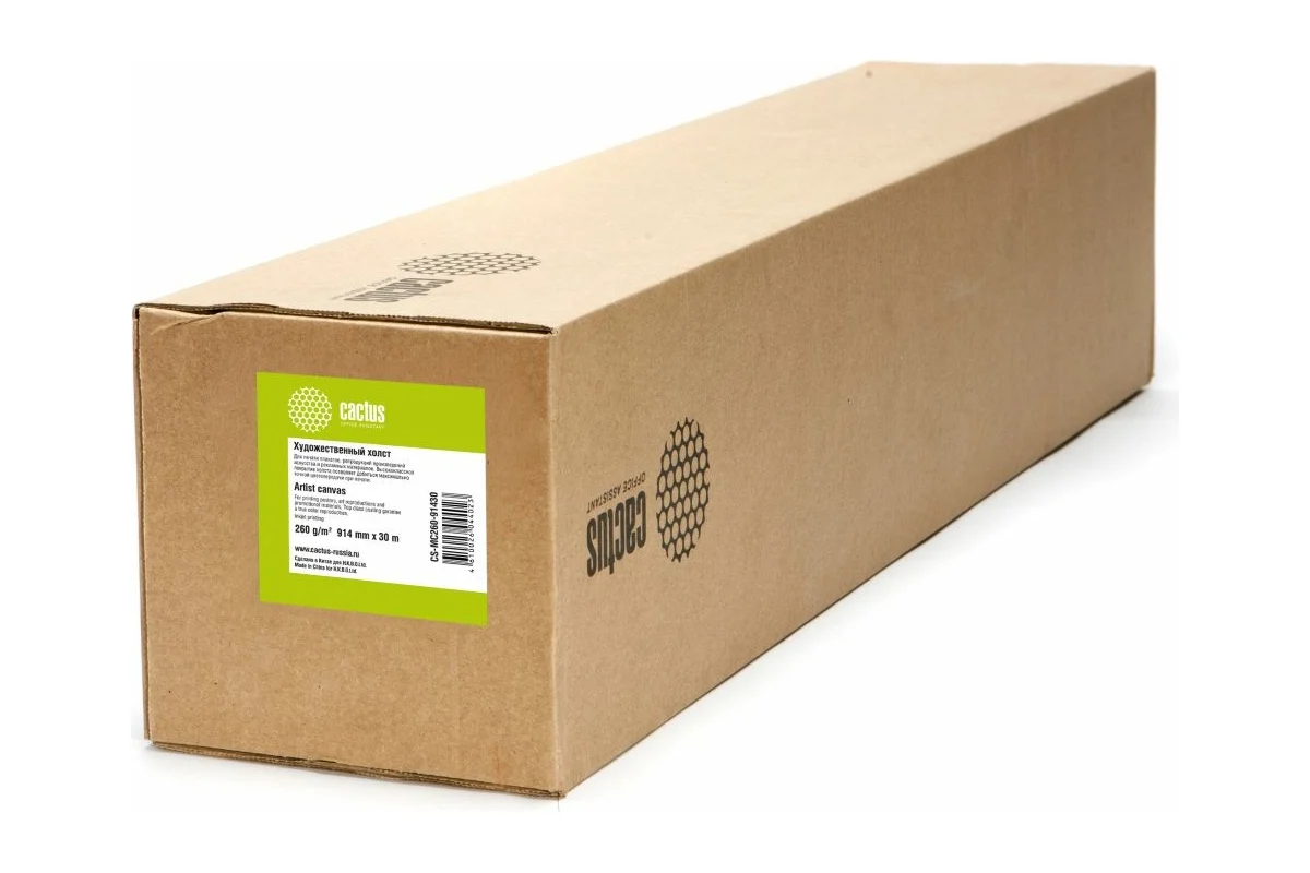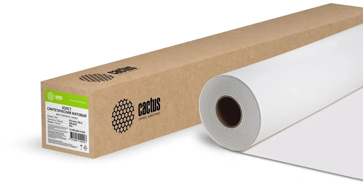 Холст для струйной печати Cactus 914 мм, 30 м, 260г/м2, белый, матовый, втулка 50.8 мм, 2" CS-MC260-91430 используется для высококачественных репродукций и произведений искусства. Холст выполнен из плотного и качественного хлопка. Высококлассное покрытие холста позволяет добиться максимально точной цветопередачи при печати. Подходит для печати сольвентными, латексными, пигментными чернилами и чернилами на водной основе. Холст поставляется в рулоне длиной 30 м.