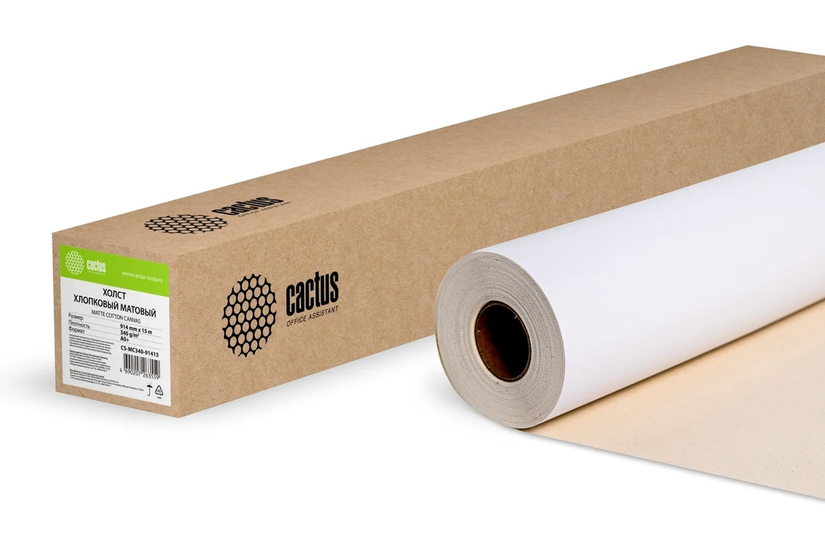Холст для струйной печати Cactus 914 мм, 15 м, 340г/м2, белый, втулка 50.8 мм, 2" CS-MC340-91415 используется для высококачественных репродукций и произведений искусства. Холст выполнен из плотного и качественного хлопка. Высококлассное покрытие холста позволяет добиться максимально точной цветопередачи при печати. Подходит для печати сольвентными, латексными, пигментными чернилами и чернилами на водной основе. Холст поставляется в рулоне длиной 15 м.