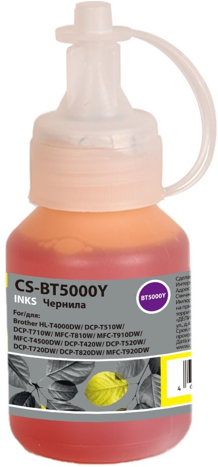 Чернила Cactus CS-BT5000Y желтый 48мл для Brother HL-T4000DW, DCP-T510W, DCP-T710W, MFC-T810W, MFC-T910DW, MFC-T4500DW, DCP-T420W, DCP-T520W, DCP-T720DW, DCP-T820DW, MFC-T920DW