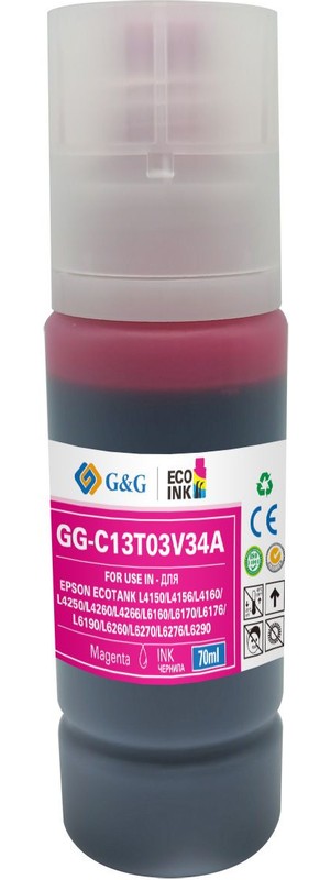 чернила, magenta (пурпурный), совместим с Epson EcoTank L4150, L4156, L4160, L4250, L4260, L4266, L6160, L6170, L6176, L6190, L6260, L6270, L6276, L6290, объём 70 мл.