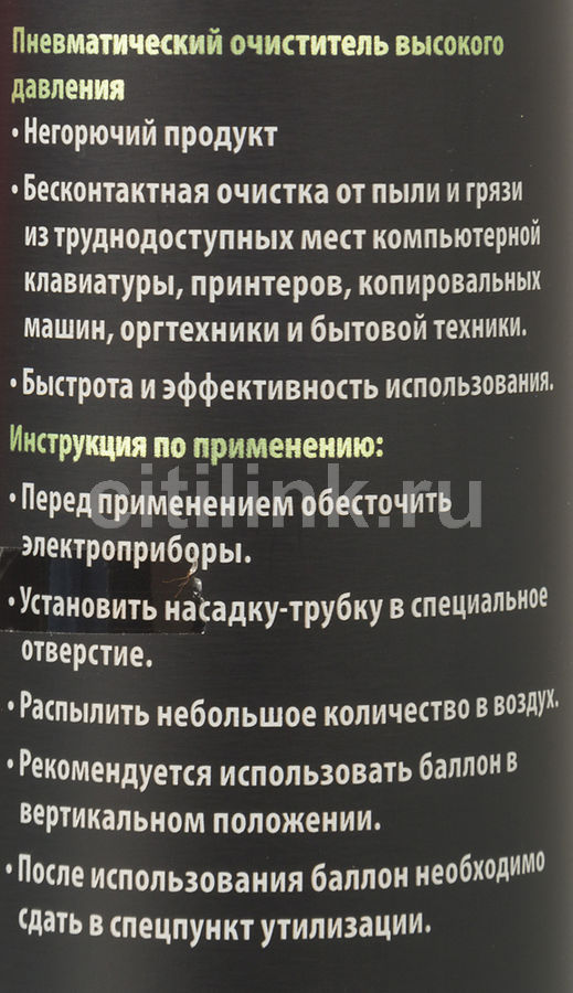 Описание: Очиститель высокого давления позволяет очищать от пыли и грязи труднодоступные места принтеров, компьютерной клавиатуры, копировальных машин, факс машин и различной оргтехники. Мощный напор струи обеспечивает быстроту и эффективность использования. Воздух в баллонах не горючий.