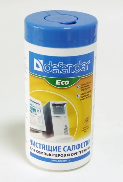 Чистящие салфетки Defender ECO для поверхностей офисной техники, (не применять для ЖК- экранов!) /туба/ 100 шт