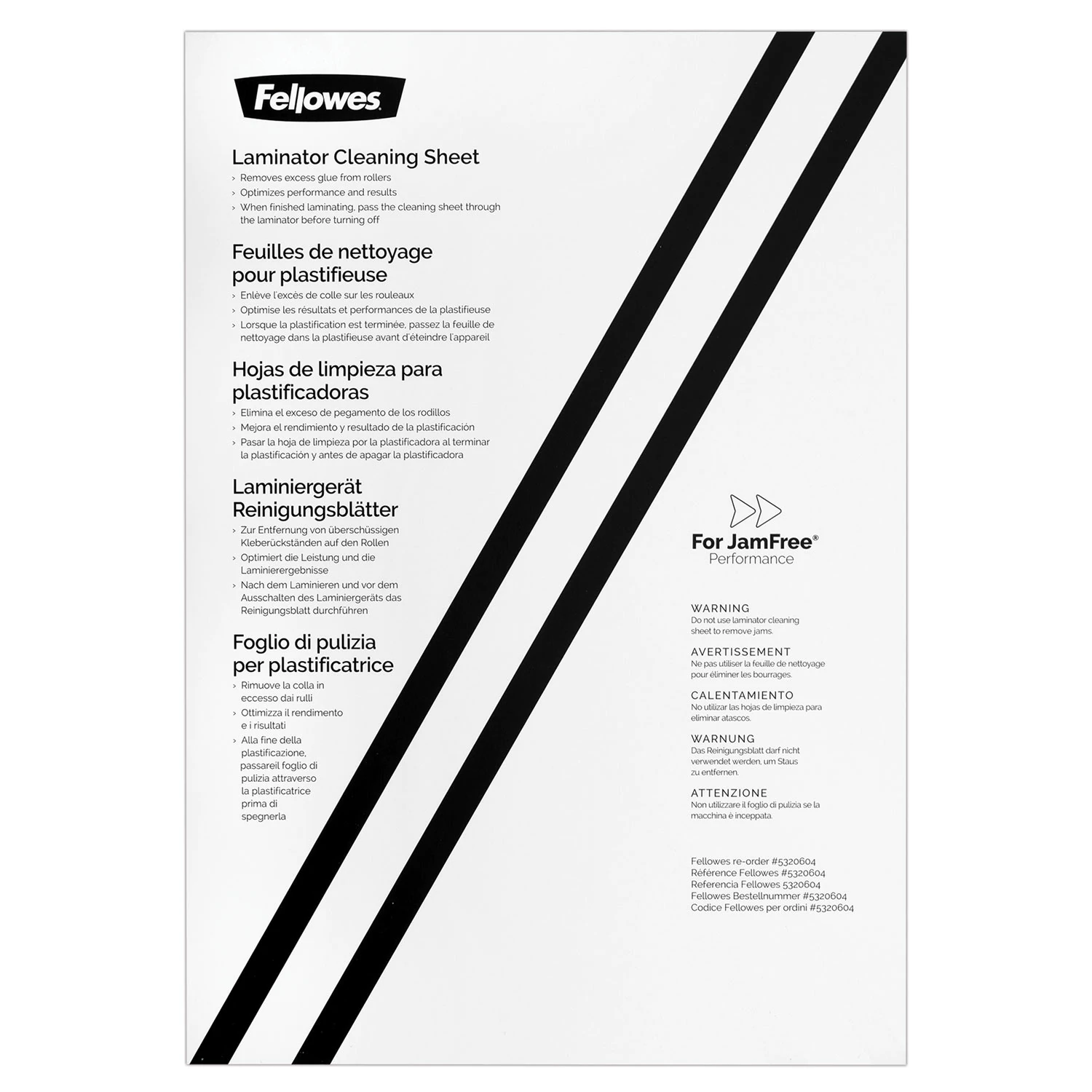 Чистящий лист FELLOWES адсорбирует остатки клея, пыли и грязи с поверхности валов.