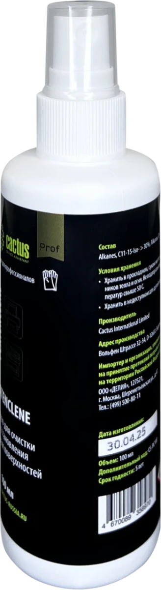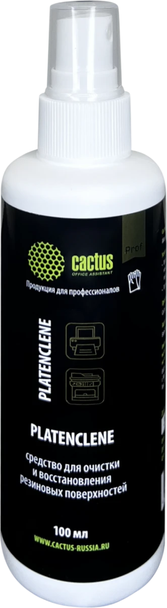 Cactus Platenclene разработан для очистки и восстановления резиновых поверхностей, валов проявки для принтеров и копировальной техники, роликов захвата бумаги, а также для очистки металлических и пластиковых вращающих моментов, направляющих картриджа, металлических контактов на картридже и пр. Очиститель эффективно растворяет тонерные и чернильные пятна, удаляет масло и жир.
