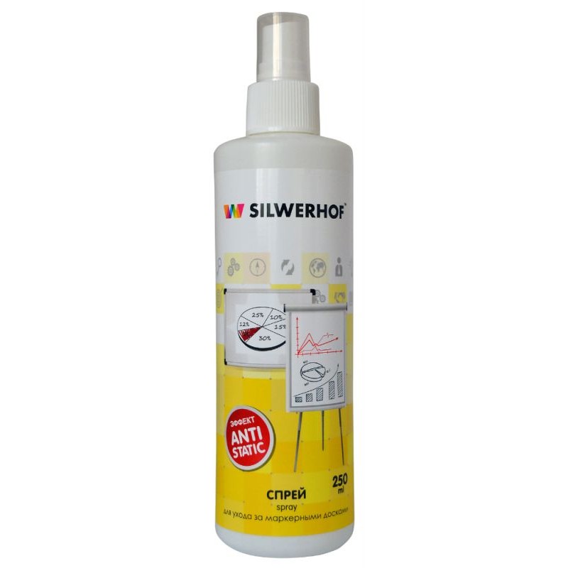 Описание Спрей-очиститель для ухода за маркерными досками. Быстро и качественно очистит поверхность не только от следов маркера, но и от иных загрязнений. Снимает электростатический заряд. Рекомендовано использование вместе со специальными губками для досок.