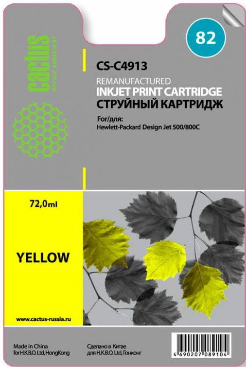 Картридж Cactus C4913 струйный CS-C4913 №82 желтый (72мл) для HP DJ 500/800C