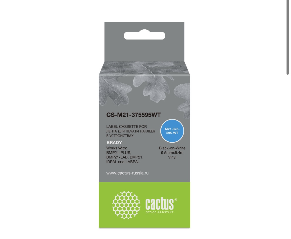 Картридж с виниловой лентой Cactus CS-M21-375595W предназнчен для общей и складской маркировки, маркировки оборудования, силовых шкафов, розеток, проводов, кабелей и пр. Благодаря усиленной адгезии и повышенной прочности, лента стойкая к растворителям, маслам и химическим веществам, поэтому её можно применять для маркировки оборудования и изделий как внутри помещений, так и снаружи. Устойчива к перепаду температур от -40 до +120°C. В упаковке 1 (непрерывная) лента шириной 9,5 мм и длиной 6,4 м.