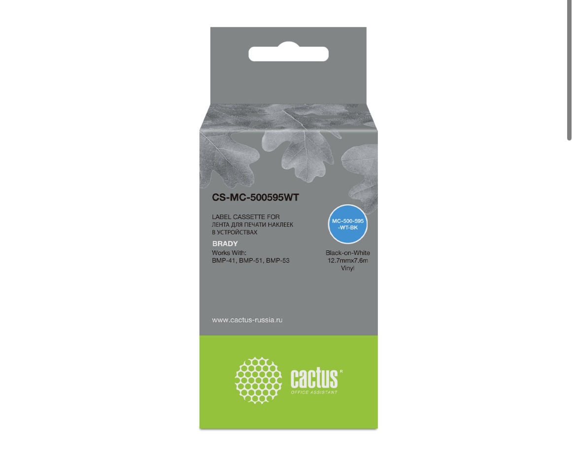 Картридж с виниловой лентой Cactus CS-M21-500595WT предназначен для общей и складской маркировки, маркировки оборудования, силовых шкафов, розеток, проводов, кабелей и пр. Благодаря усиленной адгезии и повышенной прочности, лента стойкая к растворителям, маслам и химическим веществам, поэтому её можно применять для маркировки оборудования и изделий как внутри помещений, так и снаружи. Устойчива к перепаду температур от -40 до +120°C. В упаковке 1 (непрерывная) лента шириной 12,7 мм и длиной 7,6 м.