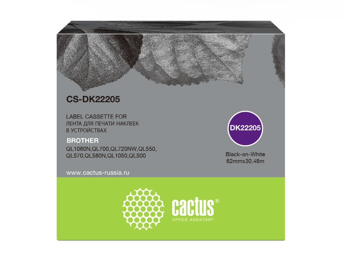 Картридж ленточный Cactus CS-DK22205: непрерывная бумажная лента 62 мм х 30,48 м, белая. Бумажные наклейки подходят для маркировки различных изделий и упаковки. С их помощью можно создавать этикетки с логотипом, штрих-кодом, бейджи для посетителей или почтовые наклейки для доставки. Широкая сфера применения: дома, в офисе, на производстве.