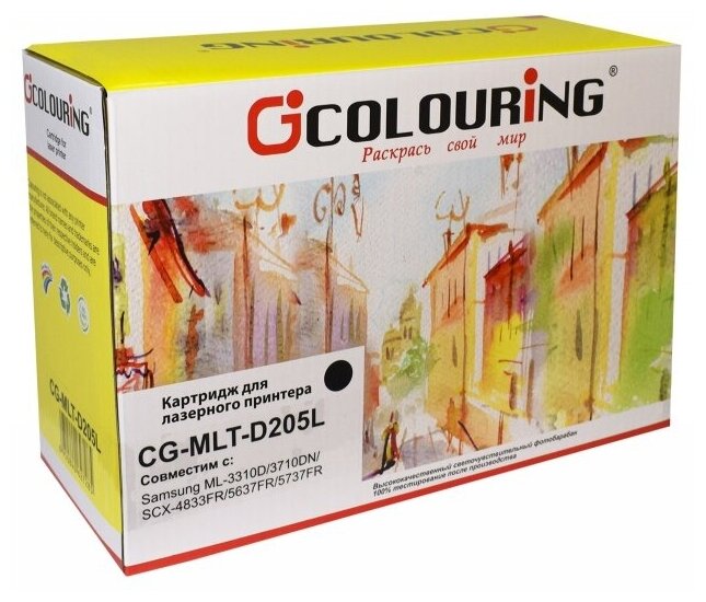 Картридж CG-MLT-D205L для принтеров Samsung ML-3310D, 3710DN, SCX-4833FR, 5637FR, 5737FR 5000 копий Colouring для Samsung ML-331xD, 371xDN, SCX-483x, FR, 563xFR, 573xFR. Цвет Чёрный. Ресурс 5000 страниц при 5% заполнении листа. Картриджи торговой марки Colouring наилучшим образом подходят для требовательного российского пользователя. Расходные материалы Colouring в разы дешевле оригинальной продукции, но при этом не уступают ей в качестве. Совместимая продукция Colouring производится на заводах, сертифицированных по Международным стандартам ISO 9001, 14001 и 19792, STMC, REACH. В дополнение вся продукция сертифицирована по стандарту ростест. Отдельно отметим про контроль качества, организованном при производстве расходных материалов для оргтехники Colouring. С 2007 на заводах этого брэнда внедрена программа "Печать качества". Вся продукция проходит строжайшее тестирование на передовом оборудовании, что позволяет протестировать каждую деталь картриджа. Благодаря этому Colouring предоставляет полную гарантию на весь срок эксплуатации.