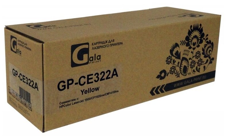 Картридж GP-CE322A для принтеров HP LJ CP1525N, CP1525NW, CM1415, 1415fnw Yellow 1300 копий GalaPrint для HP LJ CP1525N, CP1525NW, CM1415, 1415fnw. Цвет Жёлтый. Ресурс 1300 страниц при 5% заполнении листа. Картриджи торговой марки GalaPrint наилучшим образом подходят для требовательного российского пользователя. Расходные материалы GalaPrint в разы дешевле оригинальной продукции, но при этом не уступают ей в качестве. Совместимая продукция GalaPrint производится на заводах, сертифицированных по Международным стандартам ISO 9001, 14001 и 19792, STMC, REACH. В дополнение вся продукция сертифицирована по стандарту ростест. Отдельно отметим про контроль качества, организованном при производстве расходных материалов для оргтехники GalaPrint. С 2007 на заводах этого брэнда внедрена программа "Печать качества". Вся продукция проходит строжайшее тестирование на передовом оборудовании, что позволяет протестировать каждую деталь картриджа. Благодаря этому GalaPrint предоставляет полную гарантию на весь срок эксплуатации.