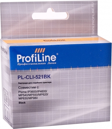 Полное наименование: Картридж PL-CLI-521BK для принтеров Canon Pixma Ip3600/IP4600/MP540/MP620/MP630/MP980 с чипом водн ProfiLine
