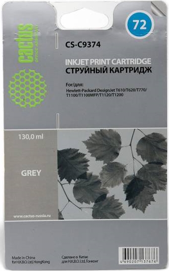 Картридж струйный Cactus CS-C9374 №72 фото серый для HP DJ T610/T620/T770/T1100/T1100/T1120/T1200 (1