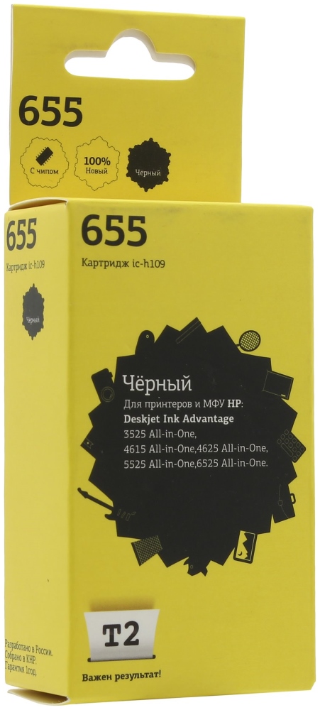 Картридж T2 CZ109AE (IC-H109) № 655, для HP DeskJet IA 3525/4615/5525/6525, черный, 550 стр