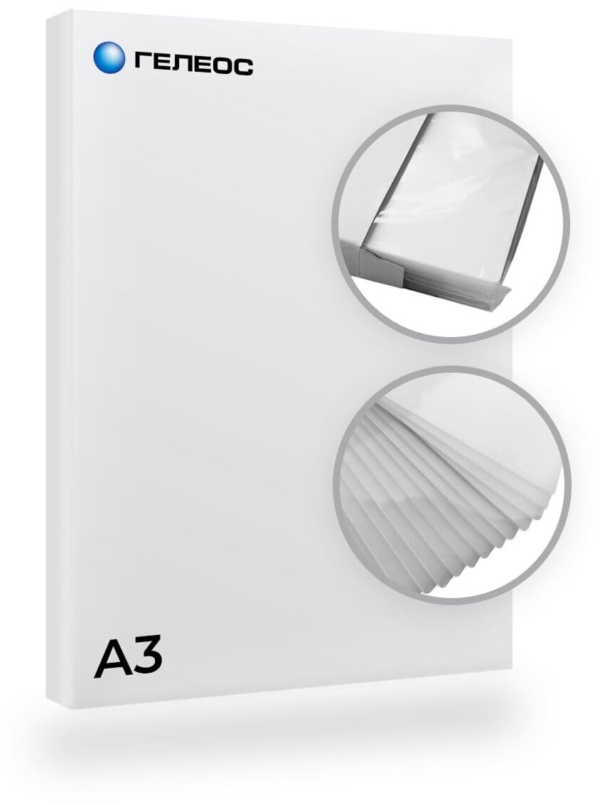 Пленка-заготовка для ламинирования ГЕЛЕОС A3, 303х426 мм, 75 мкм, глянцевая, 100 шт LPA3-75 предназначена для ламинирования документов и сертификатов.