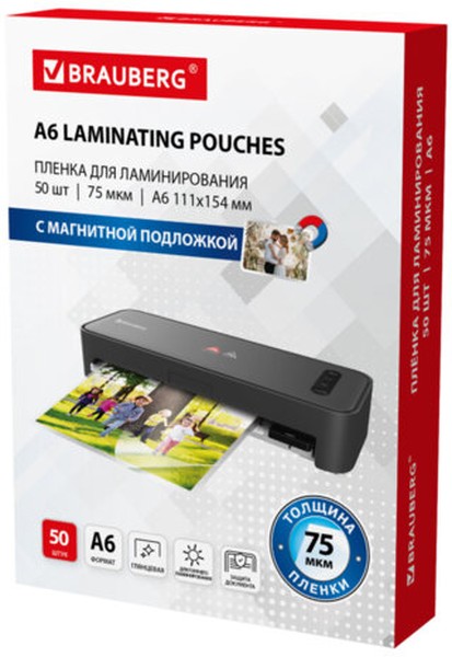 МАГНИТНАЯ пленка для ламинирования BRAUBERG надежно защитит документы от всех внешних воздействий. Благодаря магнитному слою, после ламинирования плёнку можно разместить на магнитной доске в школе, на холодильнике, или другой подходящей поверхности.