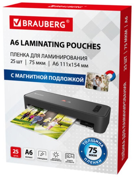 МАГНИТНАЯ пленка для ламинирования BRAUBERG надежно защитит документы от всех внешних воздействий. Благодаря магнитному слою, после ламинирования плёнку можно разместить на магнитной доске в школе, на холодильнике, или другой подходящей поверхности.