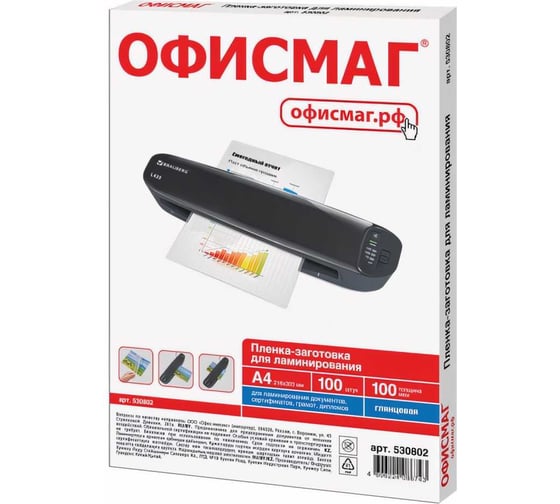 Пленка для ламинирования ОФИСМАГ придает документу стильный внешний вид, защищает от потертостей и других механических воздействий.