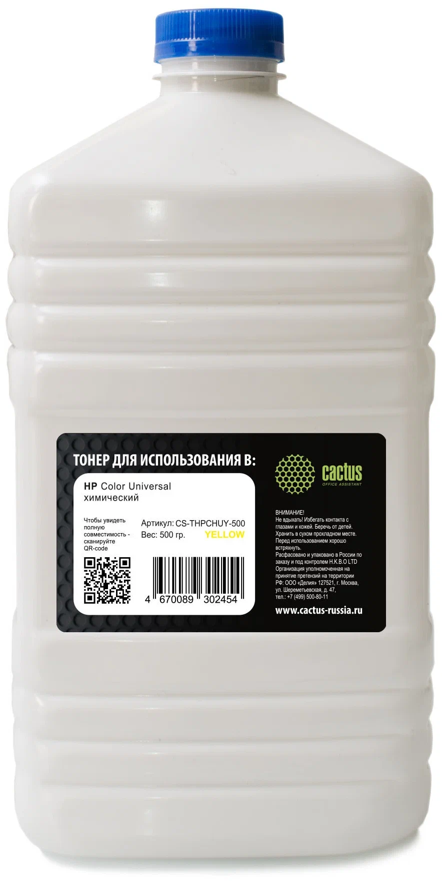 Тонер Cactus CS-THPCHUY-500 желтый флакон 500гр. для принтера HP Color Universal - характеристики, фото, отзывы покупателей, аксессуары. Перед покупкой уточняйте характеристики и комплектацию. Основные характеристики: