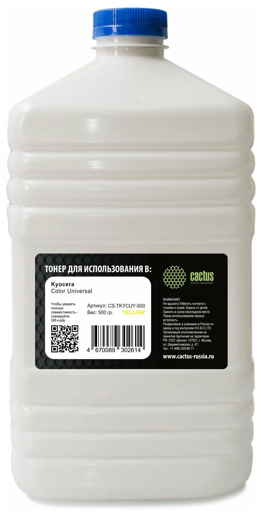 Тонер Cactus CS-TKYCUY-500 желтый флакон 500гр. для принтера Kyocera Color Universal - характеристики, фото, отзывы покупателей, аксессуары. Перед покупкой уточняйте характеристики и комплектацию. Основные характеристики: