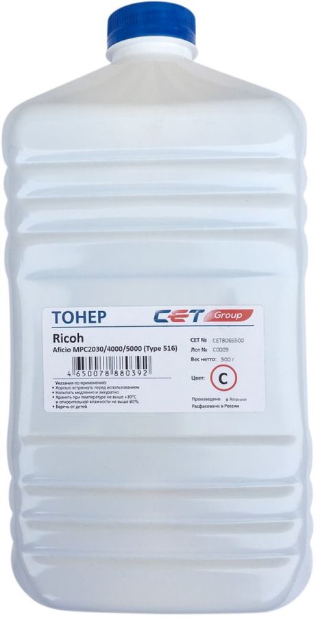Купить тонер CET Type 516, для Aficio MPC2030/4000/5000, голубой, 500грамм, бутылка в интернет-магазине Ситилинк по доступной цене. Тонер CET Type 516, для Aficio MPC2030/4000/5000, голубой, 500грамм, бутылка: характеристики, описание, фотографии, отзывы покупателей, сопутствующие товары.