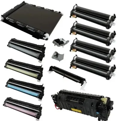 Состав: DV-5140(K) узел проявки (черный), DV-5140(Y) узел проявки (желтый), DV-5140(M) узел проявки (пурпурный), DV-5140(C) узел проявки (бирюзовый), ролики подачи в сборе, DK-5140 блок фотобарабана - 4 шт., TR-5140 лента переноса, вал переноса, ролик отделения в сборе, узел фиксации.