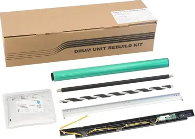 Состав комплекта: барабан (Япония), ракель, ролик заряда, ролик очистки ролика заряда, девелопер Cyan, чип с держателем.