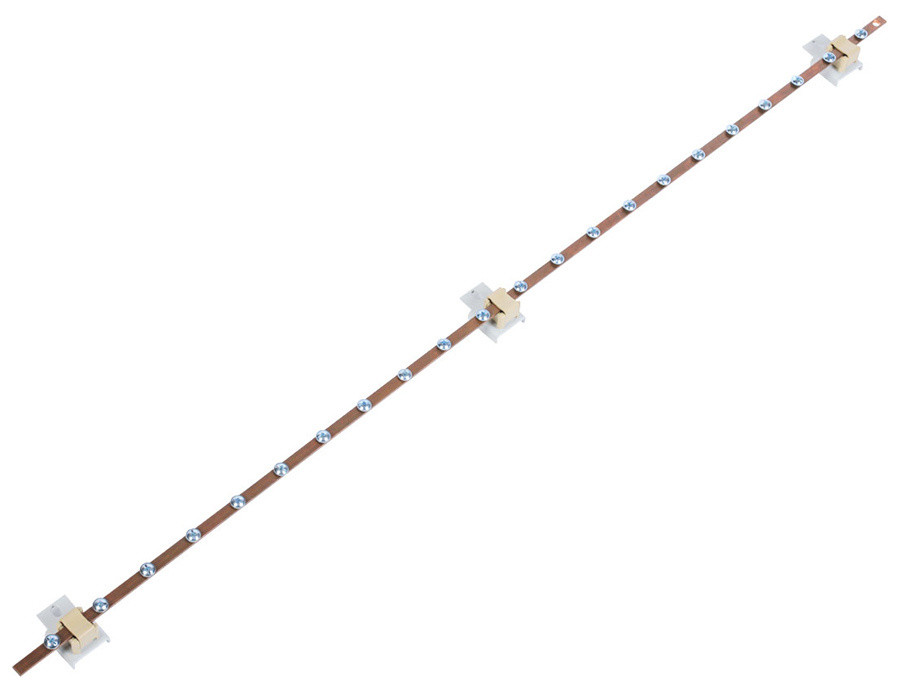 Представляет собой латунную шину сечением 5х15мм соединенную с монтажными кронштейнами диэлектрическими держателями.