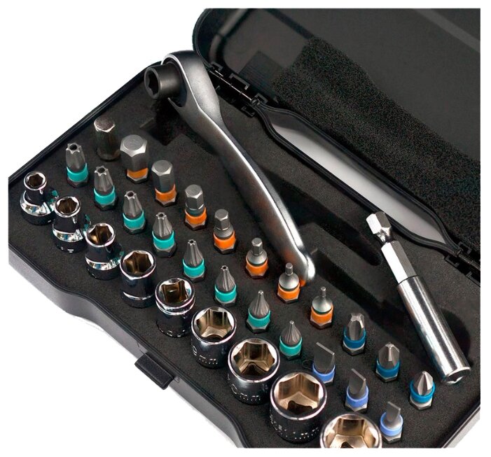 Биты подробно: PH1, PH2, PH3, SL4, SL5, SL6, T5, T6, T8, T10, T15, T20, T25, T27, H1.5, H2, H2.5, H3, H4, H5, H6, переходник