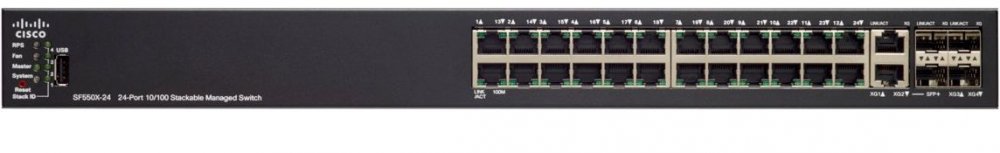 управляемый коммутатор 2 уровня, 24 порта RJ-45 10/100 Мб/с, 2 порта SFP+, 2 комб. порта RJ-45/SFP+, память оперативная 512МБ, память Flash 256МБ, комм. матрица: 84.8Гб/с, скорость обслуж. пакетов: 63 Mpps, стекируемый, Web-интефейс