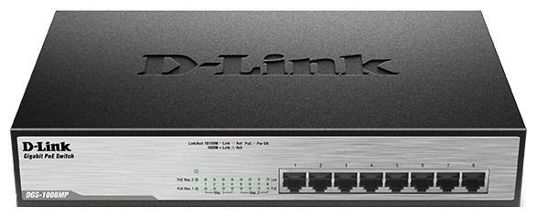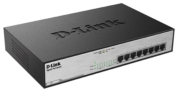 8 портов Ethernet 1 Гбит/с, поддержка PoE/PoE+, установка в стойку, размеры 280 x 44 x 180 мм