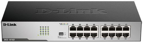 Коммутатор DGS-1016D, кабель питания, комплект для монтажа, краткое руководство по установке, крепежных кронштейна для установки в 19-дюймовую стойку, резиновые ножки, фиксатор для кабеля питания