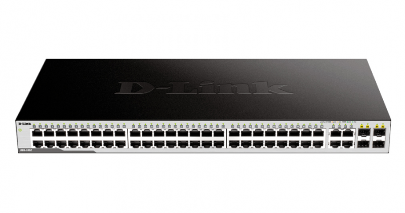 Неуправляемый коммутатор DGS-1052, оснащенный 48 портами 10/100/1000Base-T и 4 комбо-портами 100/1000Base-T/SFP, предназначен для использования в сетях SOHO и предприятий малого и среднего бизнеса (SMB).