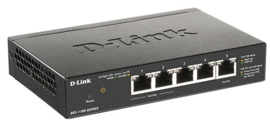 • 5 портов 10/100/1000Base-T (2 порта* с поддержкой PoE, 1 PD-порт с поддержкой питания по PoE)