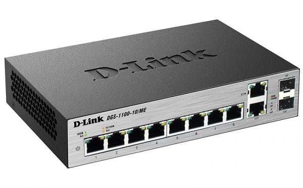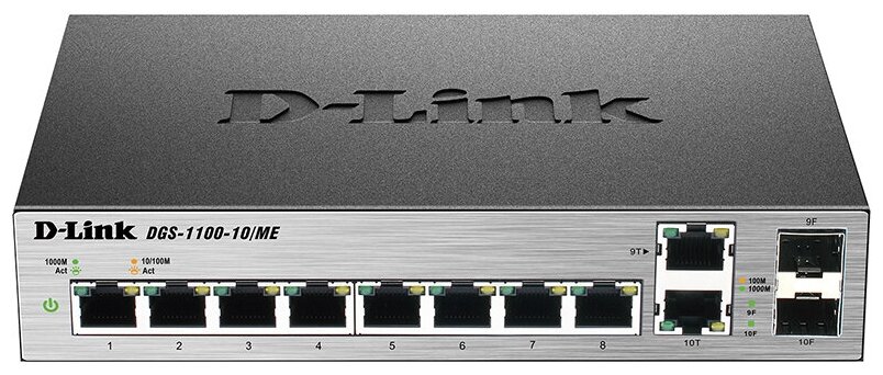 Настраиваемый коммутатор DGS-1100-10/ME оснащен 8 портами 10/100/1000Base-T и 2 комбо-портами и предназначен для развертывания сетей Metro Ethernet. DGS-1100-10/ME выполнен в прочном и надежном корпусе и поддерживает функции Multicast для IPTV-приложений. Ethernet-порты оснащены встроенной защитой от статического электричества до 6 кВ. Наличие оптического порта SFP предоставляет возможность построения сетей FTTx.