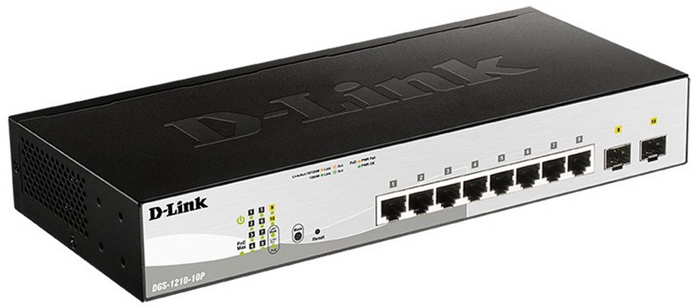 Коммутатор D-Link (DGS-1210-10MP/FL) 8G 2SFP 8PoE+ 130W управляемый
