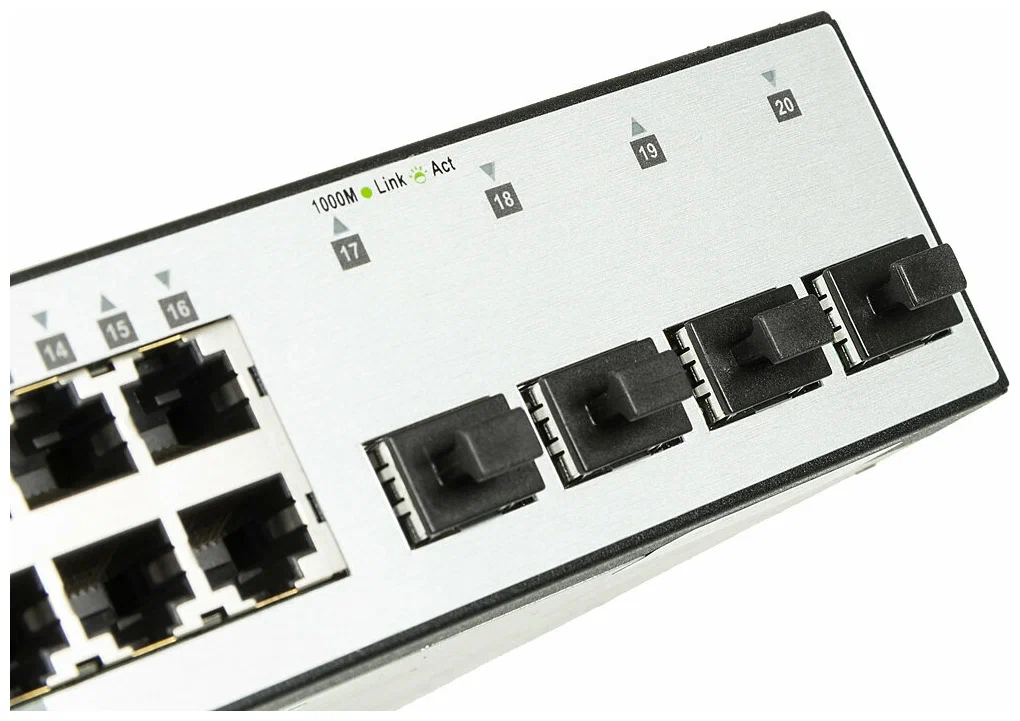 IEEE 802.1d (Spanning Tree), IEEE 802.1p (Priority tags), IEEE 802.1q (VLAN), IEEE 802.1s (Multiple Spanning Tree), IEEE 802.3ad (Link Aggregation Control Protocol), Jumbo Frame, автоопределение MDI/MDIX