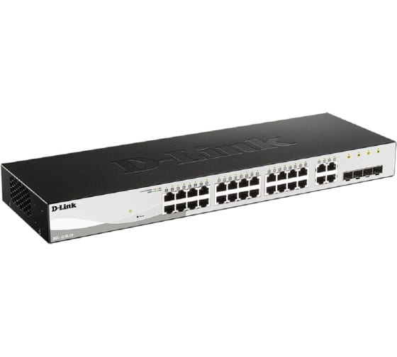 Коммутатор D-link DGS-1210-28/FL1A - настраиваемый коммутатор серии WebSmart DGS-1210-28, оснащенный 24 портами 10/100/1000Base-T и 4 комбо-портами 100/1000Base-T/SFP (DGS-1210-28/F)/4 портами 1000Base-X SFP (DGS-1210-28/C), поддерживает технологию D-Link Green и расширенные функции управления и безопасности, обеспечивая высокую производительность и масштабирование сети.