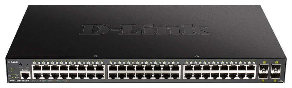 Настраиваемый L2 коммутатор с 48 портами 10/100/1000Base-T и 4 портами 10GBase-X SFP+ (48 портов PoE 802.3af/at, PoE?бюджет 370 Вт) IGMP Snooping, Port Mirroring, Spanning Tree Protocol (STP) и Link Aggregation Control Protocol (LACP)