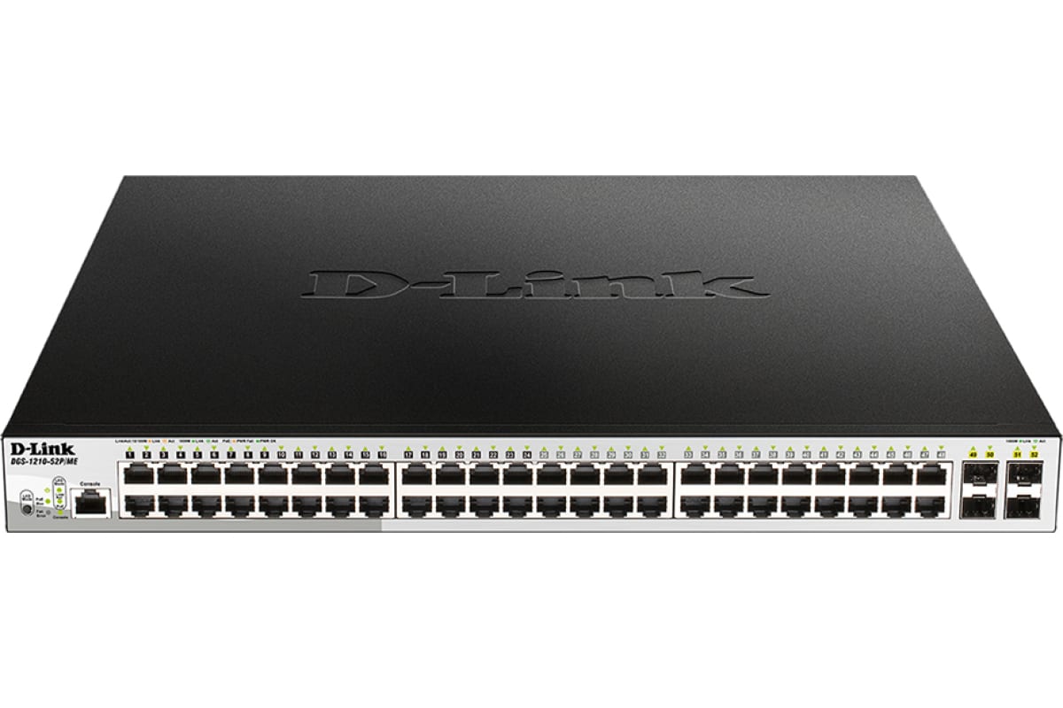 Технические характеристики d-link 2 уровня с 48 портами и 4 портами (порты 1-8 с поддержкой poe 802.3af/802.3at (30 вт) DGS-1210-52P/ME/B1A