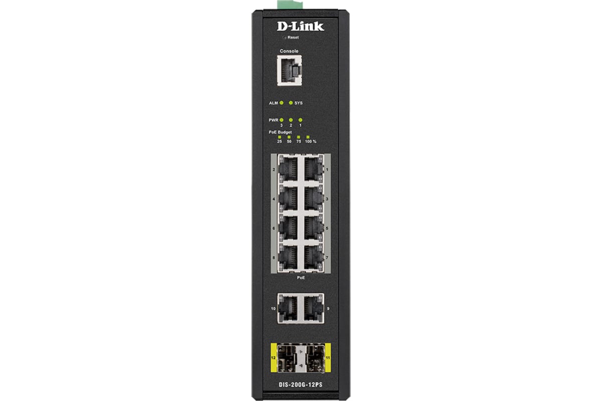 Технические характеристики d-link 2 уровня с 10 портами 10/100/1000base-t и 2 портами 1000base-x sfp 8 портов с poe DIS-200G-12PS/A2A