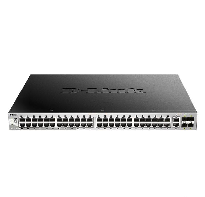 Комплект поставки Коммутатор DGS-3130-54PS, кабель питания, фиксатор для кабеля питания, консольный кабель (с разъемами RJ-45 и RS-232), 2 крепежных кронштейна для установки в 19-дюймовую стойку, комплект для монтажа, 4 резиновые ножки, краткое руководство по установке, компакт-диск