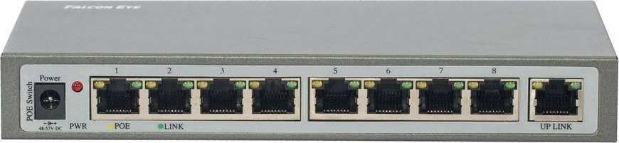 Сетевой коммутатор Falcon FE-108E-POE на 8 портов 10/100 Мбит/с (IEEE802.3u 100BaseTX) из них 8 c поддержкой PoE (IEEE802.3af) до 15,4Вт на порт (HI POE). Суммарная мощность потребителей 130 Вт, таблица МАС адресов - 8К,