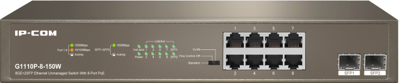 - 8 портов Ethernet 10/100/1000 Base-T (данные/питание); 2 порта SFP 100/1000 Base-X