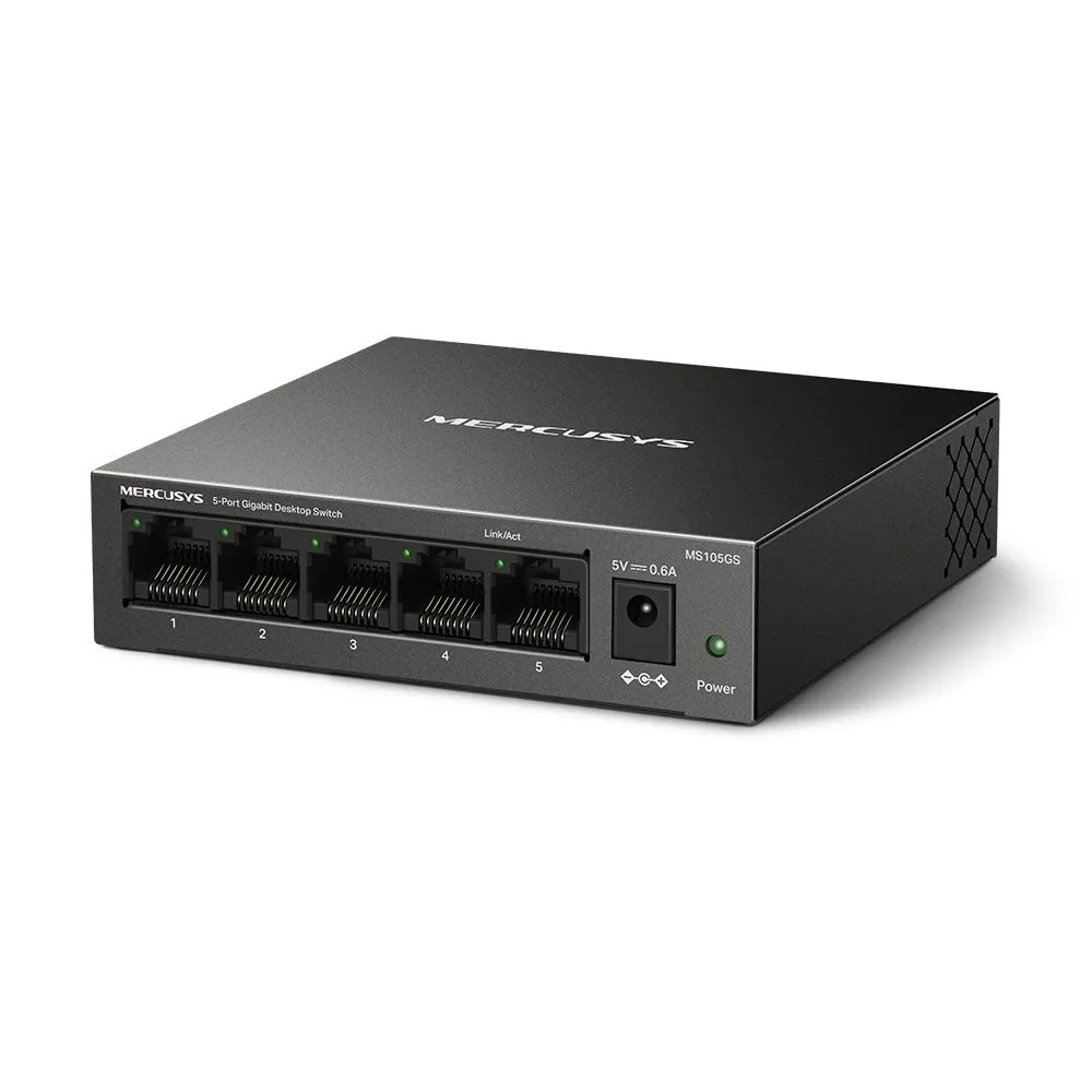 Гигабитные порты: пять гигабитных портов RJ45 с автосогласованием скорости и автоматическим определением типа кабеля — MDI или MDIX. Несколько способов размещения: устройство можно разместить как на столе, так и на стене. Прочный корпус из металла: обеспечивает эффективное рассеивание тепла Plug and Play: не требуется предварительная настройка. Пониженное энергопотребление: благодаря технологии энергосбережения.